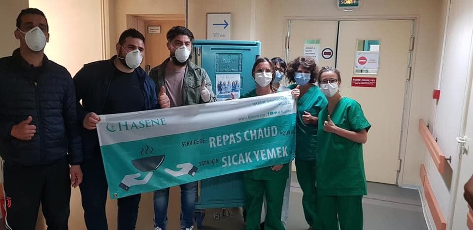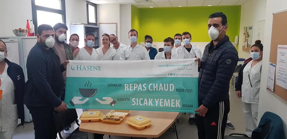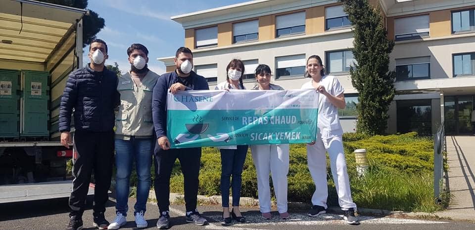Bu sıkıntıların bize aynı zamanda bir çok fırsatları verdiğinin de şuuruyla biz Hasene Fransa derneği olarak bağışçılarımızın desteğiyle Güney Fransa’da Beziers’de bulunan Üç hastaneye yemek yardımı yaptık.
